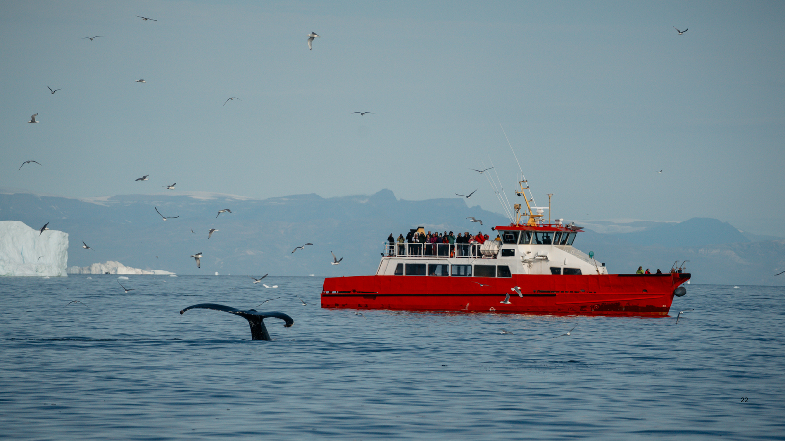 Dopoledne nás čeká nezapomenutelný zážitek, plavba za velrybami v Disko Bay. Tato oblast je známá jako jedno z nejlepších míst na světě pro pozorování velryb, zejména v letních měsících. Během plavby se můžeme těšit na setkání s velrybami, které se vyskytují v těchto vodách. Doprovodný výklad nás seznámí s těmito fascinujícími tvory a jejich prostředím. Po návratu na pevninu se vydáme na krátkou variantu žluté stezky, která nás zavede směrem k Icefjordu. Tato stezka nabízí nádherné výhledy na fjord a okolní krajinu.