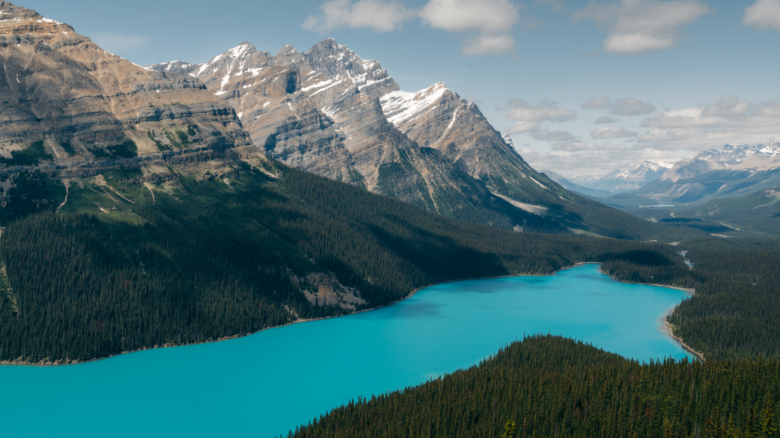 Peyto Lake – ikonický vlčí tvar v tyrkysové barvě
