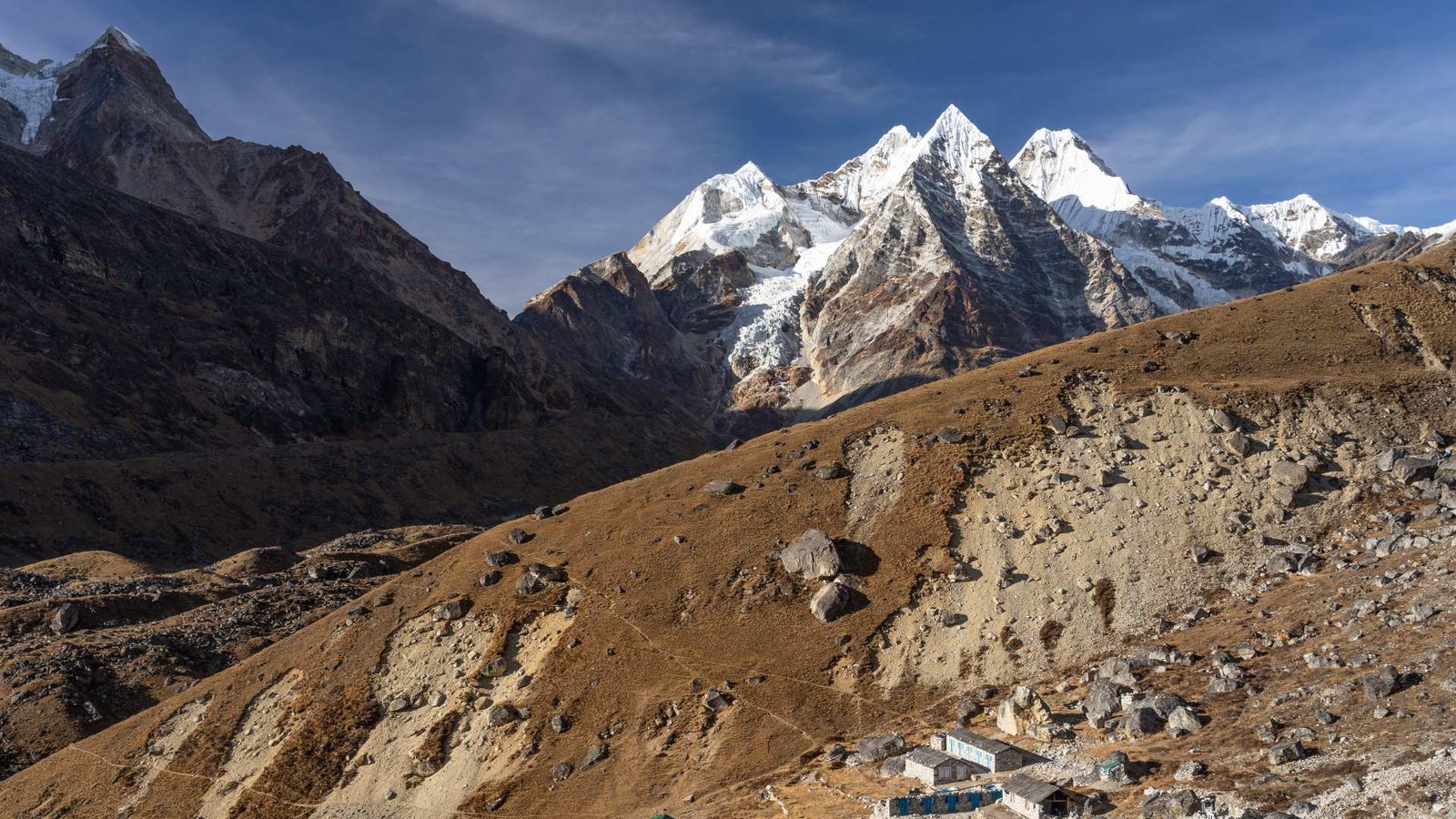 Klíčový přesun. Překračujeme magickou hranici 5 000 metrů. Cesta vede přes morénu ledovce Dig Glacier. Je to strmé, drsné a krásné. Khare je naše základna. Tady už je zima, tady už se nehraje na komfort. Tady se soustředíš na cíl.