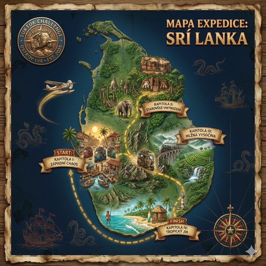Zapomeň na nudu v resortu, kde dny splývají v jeden. TukTuk Challenge: Ostrov Lva ti vrátí volant do ruky. Doslova. Na 12 dní jsi pánem svého času, své cesty a svého příběhu. Ty, tvoje posádka a jeden ikonický tříkolový stroj, který bude tvým domovem, parťákem i výzvou. Čeká tě přes 1000 kilometrů napříč Srí Lankou – od chaosu v Kolombu přes mlžné hory až po divoké pláže jihu. Zapomeň na nalajnovaný itinerář. Tady scénář píšeš ty. Každý den dostaneš do ruky TukTuk Press s mapou možností a úkoly. Je jen na vaší posádce, jakou taktiku zvolíte. Rychlý přesun za body? Nebo celodenní objevování zapadlých vesnic? Máš absolutní svobodu rozhodnutí, s jištěním v zádech.